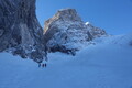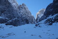 Potegnem visoko do roba pod Mali Jalovec. Mir in tišina. Nekaj fotografiram, nato pa se pripravim na spust. Skorja ni tako lahko smučljiva, kot sem upal, zato po prvem padcu preklopim na previdnejše zavijanje. Ko prismučam pod ozebnik, v njem ni nikogar več.
