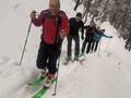Tura je bila res lepa. Smučanje pa... no ja, je bilo največkrat boljše. Že na križišču pri smetnjakih smo komaj našli prostor. Navzgor je šlo po špuri idealno. Že gor grede smo hitro ugotovili, da po super skorjastem snegu iz vrha po gozdu ne bo šlo. Mimo koče smo šli na vrh. Take gneče na Javorniku še nisem doživel, pa še kar so gor hodili. Iz vrha do koče je blo fajn, saj je skorja držala. V kočo smo šli samo pogledat kakšna gneča je. Pa spet na pse in na vrh "smučišča". Tudi zgornji del smučišča je bil kar fajn za pelat, malo trdo ampak ok. Spodaj pa rodeo čez razrito in skorjasto pobočje in še šus po špuri do avta. Tudi taka tura je fajn, sploh zaradi lepega vremena in prijazne mlade kelnarce pri Turku. Juhuhu! Mojca, Dejan, Mare, Dare in Aleš