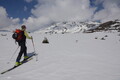 široko pobočje se zoži v izpostavljen greben, kjer veter in sneg naredita svoje. Pomladanski sneg je ravno prav odpuščen, a še vedno dovolj nosilen, da omogoča uživaško smuko. Zavoji si sledijo drug za drugim, vse do zadnje zaplate snega.