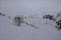 Tik pod meglenim pokrovom, na višini okoli 2.300 metrov, se odločimo obrniti. Do vrha bi imeli vsaj še dve uri vzpona, in raje kot tvegati tavanje po megli, se prepustimo mikavni dolini. V loku proti SV nas pripelje nazaj na planino in nam podari odlično smuko. Celo difuzna svetloba, ki smo jo sprva pričakovali, se je porazgubila.