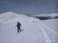 Prejšnji dan z Vogla na Komno, seveda naslednji dan nismo šli samo v dolino, ampak se povzpeli na Bogatinsko sedlo in od tam po grebenu mimo Vrha nad Gracijo pridrsali na Lanževico. Misel o podaljšani turi na Veliko Babo smo opustili že na Bogatinskem sedlu, saj se je s primorske strani vreme kisalo. Vrh Lanževice in smuko z nje smo ujeli še v zadnjem trenutku - za nami se je že zaprla v meglen oblak. Smučali smo čez Mrzlo Komno in Turška vratca proti Planini na Kraju (Koča pod Bogatinom) nato pa mimo Doma na Komni v dolino do Savice oziroma dokler je bil sneg (cca 1200m). Še en prelep turnosmuški dan...