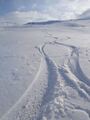 Najdražjo sem peljal na Brnik in se zapeljal še do Jezerc/Kriško planino, ko sem bil ravno v teh koncih. Z Jezerc do Kriške planine je že malo kopnin na začetku, sicer pa zvezna snežna podlaga vse do vstopa v gozd nad planino. Steza v gozdu je na večih mestih že kopna in je najbolje kar nosit vse do izhoda iz ruševja, ko se svet prevesi proti Planini Koren. Od tu naprej je snega dovolj, zjutraj pomrznjen, čez dan pa lepo predelan. Najprej sem jo mahnil na Kompotelo, nato na Vrh Korena potem pa še na Košutno - tako sem smučal s K3 ;) Čudovit pomladni dan in odlične snežne razmere. Ob spustu pa mučno gozdarjenje čez ruševje - poskusil sem ohranjati višino, sledil sem sledem predhodnikov, ki so se prav tako trudili, a snega je vedno manj... Vseeno mi je uspelo in čeprav malce smolnat, sem se povzpel do smučišča na sedlo Razor (med Zvohom in Krvavcem) ter potem preko Krvavca po smučišču odsmučal nazaj na Kriško planino in oddrsal do avta na Jezercih. Z vsemi ponovitvami se je nabralo dobrih 1100 višincev. Skratka čudovit dan in prav prijetna tura - če odmislimo gozdarjenje ;)...