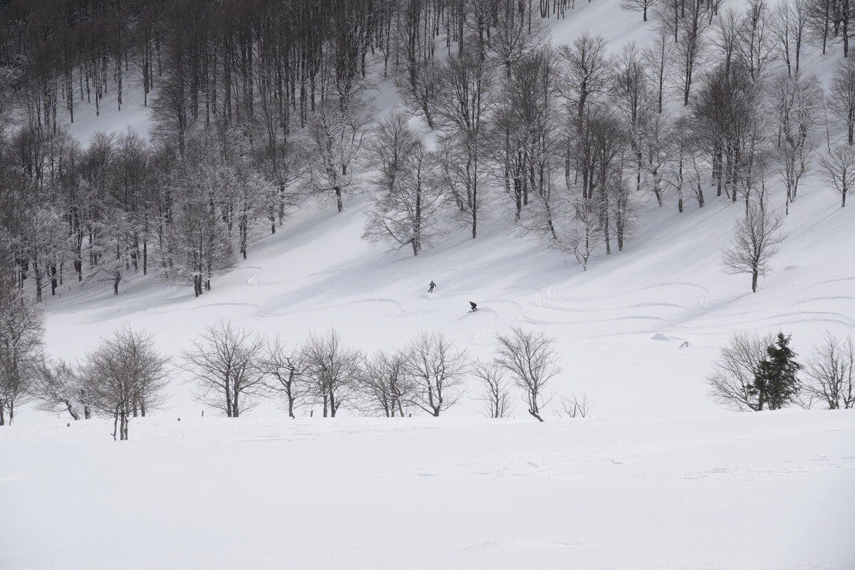 Hitro smo si bili enotni: spustimo se po skoraj deviški flanki naravnost proti vzhodu.