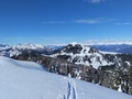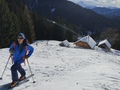 Petek 13.je očitno lari fari,saj naju je z Petrom nagradil z krasno turo. Seveda je k temu veliko pripomoglo lepo vreme in dobre razmere.Od parkirišča pri Gamsu,se podava z mednarodno udeležbo,po lepi špuri proti vrhu. V dveh urah sva v mirnem,sončnem dnevu na karnijskem razgledniku.Mnogi obiščejo sosednji Kovk.Po delno razdrtem terenu,iskaje sledi predhodnikov se prebijeva na cilj.