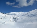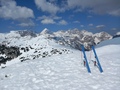 Najdražjo sem peljal na Brnik in se zapeljal še do Jezerc/Kriško planino, ko sem bil ravno v teh koncih. Z Jezerc do Kriške planine je že malo kopnin na začetku, sicer pa zvezna snežna podlaga vse do vstopa v gozd nad planino. Steza v gozdu je na večih mestih že kopna in je najbolje kar nosit vse do izhoda iz ruševja, ko se svet prevesi proti Planini Koren. Od tu naprej je snega dovolj, zjutraj pomrznjen, čez dan pa lepo predelan. Najprej sem jo mahnil na Kompotelo, nato na Vrh Korena potem pa še na Košutno - tako sem smučal s K3 ;) Čudovit pomladni dan in odlične snežne razmere. Ob spustu pa mučno gozdarjenje čez ruševje - poskusil sem ohranjati višino, sledil sem sledem predhodnikov, ki so se prav tako trudili, a snega je vedno manj... Vseeno mi je uspelo in čeprav malce smolnat, sem se povzpel do smučišča na sedlo Razor (med Zvohom in Krvavcem) ter potem preko Krvavca po smučišču odsmučal nazaj na Kriško planino in oddrsal do avta na Jezercih. Z vsemi ponovitvami se je nabralo dobrih 1100 višincev. Skratka čudovit dan in prav prijetna tura - če odmislimo gozdarjenje ;)...