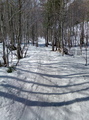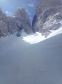 Takoj iz parkinga na smučke, no dobr ene dvesto metrov je vseeno treba peš, da prideš na niti ne prehudo ledeno cesto. Nisem bi zgoden, pozen pa tudi ne-mal čez deveto. Veter preteklih dni se naj bil tekom dneva umiril in res, ga skoraj ni bilo, razen na vrhu sedla. Dva italijana pred menoj tacata ravno po špuri. Neverjetno res. Bi jima kaj rekel, vendar, ko ju dohitim, vidim zaljubljen par. Brez veze, itak sta z mislimi na pol drugje. No nekje sredi melišča se tudi jaz odločim, za pešaka in da bom dal smučke na hrbet. Poln kufr mam odrsavanja, zato do izravnave pod ozebnikom nosim. Eden pred menoj brez težav na dilcah, meni pa ne ratuje. Ne vem, nekaj glede hoje mi ne špila. Kakrkoli, kmalu sem na vrhu sedla in kmalu me tudi ni več. Piha. Smuka pa vse živo, od klože, napihanca, zastrugov, betona, pred gmajno skoraj čofta, v gozdu pred kočo lepa steza, poglihana u nulo, ni da ni. Lep dan je bil. Aja, sem poskusil še na velikanko, pa me je mojstr očitno zadolžen za njo vljudno opozoril, da me ne bo spustil po puklu. Lep pozdrav, Samo