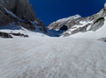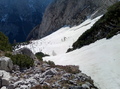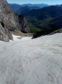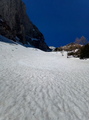 Pod Dolkovo špico nobene plazovine. Malo me stisne, a sploh še je sneg. Kljub vsemu me sneg kmalu pričaka v ruševju še pred izravnavo. Ne vem, a je to Češka plošča al ne. Sledim stopinjam v levo pod Stenarjevo steno, kjer so še obilna snežišča, nato pa v desno na plato pod Stenarjevimi vrati. V spomin mi pride lansko motoviljenje, zato preventivno nataknem srenače. Hvala bogu, da sem jih, saj me pričakajo januarske razmere, napihana kloža in poledenelo pobočje. Gre. Kmalu sem na grebenu Križa, ki je sicer spihan, a se da lepo hoditi, brez prekinitve. Dan je krasen, toplo ni, ampak vroče. Pofotkam in hajd nazaj v civilizacijo. Smuka? Bom spet rekel, za moje pojme krasna, ampak ocena ni objektivna, ker sem res navdušen nad gorsko pokrajino in ocene izgubijo smisel. Zavijam z lahkoto, ni premehko, srenec po moje. Najraje bi ostal tam gor. Pod Stenarjevimi vrati še vedno trdo, čeprav je sonce že tudi tu posvetilo. Zopet grem k Stenarju in po snežišču do ruševja. Premami me en dolg snežen jezik v ruševju in v elementu kot sem bil, sem ga odsmučal prav do konca. Ok, vem da sem malce nižje in precej desno od poti, zato jo mahnem malo na pamet preko ruševja do poti, ki je tam nekje. Ne, ruševju se do nadalnjega umaknem daleč naokoli. Po vseh mukah božjih pridem precej nižje na pot, kot sem mislil. Moral sem ponovno v klanec po "superge". Ruševje je zahtevalo svoj davek, saj sem strgal prednjo zajlo na pancarju. Mah, že ko sem jih kupil, sem vedel, da bom slej ko prej zapel ta smotan sistem in vse potrgal. No, končno mi je uspelo. Nič ne jamram, bil je čudovit dan, zame zadnji turni v tej sezoni. Zadovoljen, da sem jo zaključil, kot se zagre, se pripeljem do zapornice na koncu Vrat. Opa, znesek parkiranja pa kar 14 evrov. Sedaj vem, zakaj na celi turi nisem srečal niti ene človeške duše.