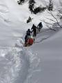 Potem ko je imel novo zapadli sneg včeraj lastnost živega peska, se je preko noči toliko preobrazil, da je danes nudil izvrstno smuko. Nevarnost zadušitve ob padcu je minila.