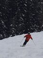 V Ukvah nas preseneti nova mitnica - 5 evrov, ki jih z veseljem damo, saj je cesta kopna, parkirišča pa lepo splužena. Mimo zasedenih spodnjih parkirišč pogumno zavijemo navzgor, kjer je še dosti prostora. Vzpon začnemo v zelo toplem soncu, ki dobro ojuži sneg. Ko pridemo iz gozda sonce zakrijejo oblaki in postane bolj prijetno za vzpon. Pobočje je seveda že popolnoma zvoženo. Proti vrhu je že skoraj pršič. Na vrhu se moramo obleči, a ni mraz. Smučarji so povsod, še največ na Kovku, pa tudi Konjščica ni osamljena. Kljub zvoženemu pobočju je smučanje kar v redu, skozi gozd je zvožena že prava smučarska proga, spodaj pa je prijetno mehko smučišče. Veselo smo zavijali Jana, Mojca, Mare, Dare in Aleš. Juhuhu!