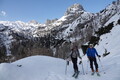 Ko dosežemo pot iz Mišeljskega proti Lazovškemu prevalu, zavijemo levo in po sistemu dolinic udobno prismučamo pod Ograde. Tretjič tisti dan nalepimo kože in odrsamo proti Krstenici. Spust do Blata bi bil sicer najudobnejša izbira, a kdo bi se uprl povabilu na kosilo na planini Zgornja Grintovica, kjer nas že objame prava pomlad.