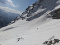 Danes nad Vršičem zelo lep dan.Malo čez osmo uro je bilo zgornje parkirišče kar polno.Sneg je bil še rahlo pomrznjen,tako da takoj z srenači v breg.Sam jo mahnemo v smeri Nad Šitom glavo in ni mi žal.Z naključnim samotarjem si deliva celo pobočje.Res je malo nižje od MM,a to je duši čisto vseeno.Planiška velikanka je speljana v nulo, pobočje pod mano proti Vršiču pa tudi.Spomladsnski sren je takšen kot mora biti.